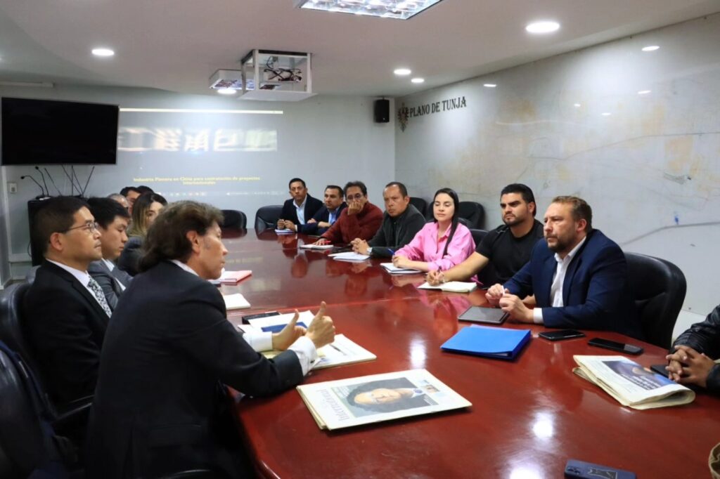 El alcalde de Tunja, Mikhail Krasnov recibió a Xia Qinqtao, Gerente General de China Civil Engineering Construction Corporation, acompañado de Carlos Peñaloza y una delegación de ese país, en este primer encuentro se dialogó de la posibilidad de la firma de un convenio marco que reactive el corredor férreo y con este también se incentiven nuevas alternativas de turismo, para Tunja y Boyacá. Seguimos tejiendo redes internacionales para Conectar a Tunja con el Mundo, manifestó el mandatario de los tunjanos.